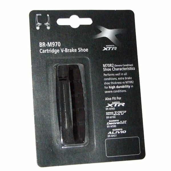 La paire de patins à cartouches SHIMANO XTR est compatible avec les gammes de freins XTR, XT, Deore LX et Alivio.